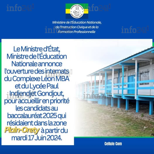 Le gouvernement gabonais a décidé de mettre en place un dispositif exceptionnel pour les élèves de terminale affectés par les déguerpissements du 3 juin dernier à Plaine-Orety. Le ministère de l’Éducation nationale a annoncé l’ouverture progressive d’internats pilotes dans la province de l’Estuaire, à compter du mardi 17 juin. Cette mesure vise en priorité les élèves candidats au baccalauréat dont les familles ont perdu leur logement à la suite des opérations menées par les autorités.