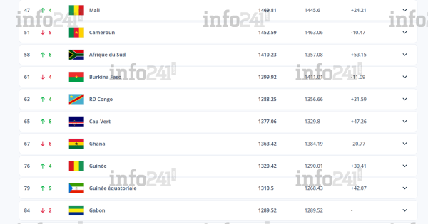 Classement FIFA post-CAN : Le Gabon chute de 2 places, derrière la Guinée équatoriale et la RDC © 2024 D.R./Info241