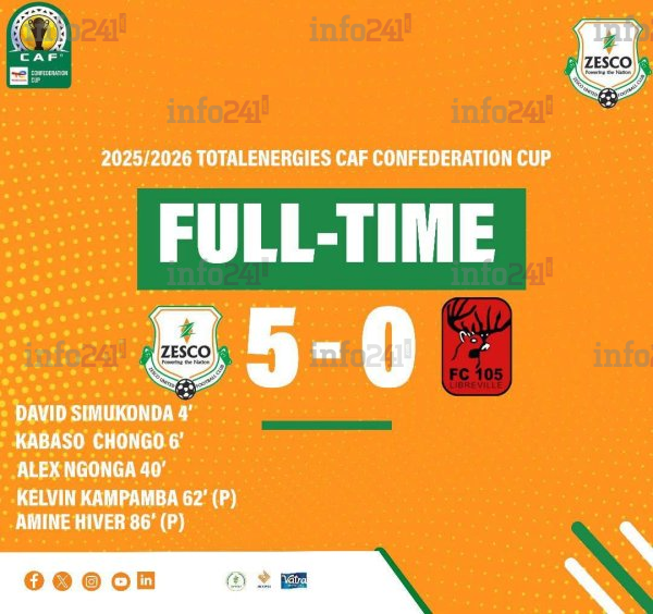 Le Football Canon 105 a vu son aventure africaine s’achever brutalement ce dimanche 28 septembre 2025. Après une victoire convaincante 2-0 à Franceville le 14 septembre, le vice-champion du Gabon a sombré lors du match retour face à Zesco United au stade Levy Mwanawasa de Ndola (Zambie), s’inclinant sur le lourd score de 5-0. Sur l’ensemble des deux confrontations, les Gabonais s’inclinent 5-2, quittant prématurément la Coupe de la Confédération de la CAF.