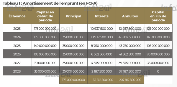 Le tableau récapitulatif de cet emprunt