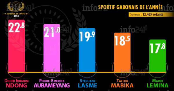Didier Ibrahim Ndong a ainsi obtenu des 12.465 voix exprimées 22,8% des suffrages talonné par Pierre-Emerick Aubameyang (21%), Stéphane Lasme (19,9%), Taylor Mabika (18,9%) et Mario Lemina (17,8%). Un vote serré qui a donc tourné à l’avantage du sociétaire du Sunderland.