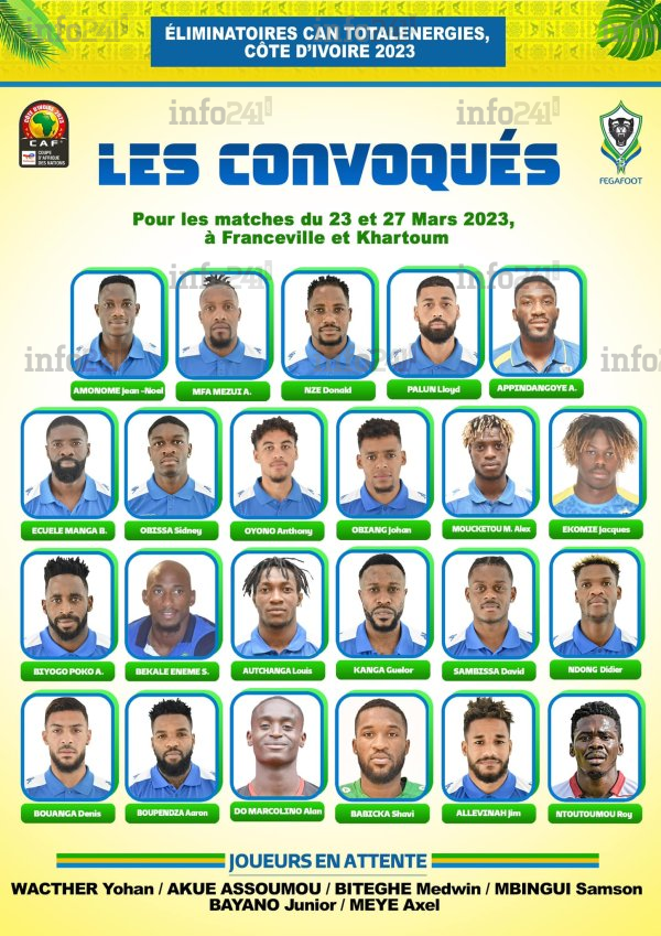 Eliminatoires CAN 2023 : Neveu livre sa liste de 23 Panthères du Gabon contre le Soudan © 2023 D.R./Info241