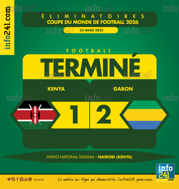 Les Panthères du Gabon se sont imposées ce dimanche après-midi au Nyayo National Stadium de Nairobi face au Kenya (2-1), lors de la 6e journée des éliminatoires de la Coupe du monde 2026. Un succès capital qui permet aux Gabonais de prendre provisoirement la tête du groupe F. Le Gabon confirme ainsi sa supériorité face au Kenya, qu’il avait déjà battu sur le même score (2-1) lors du match aller disputé à Franceville le 16 novembre 2023.