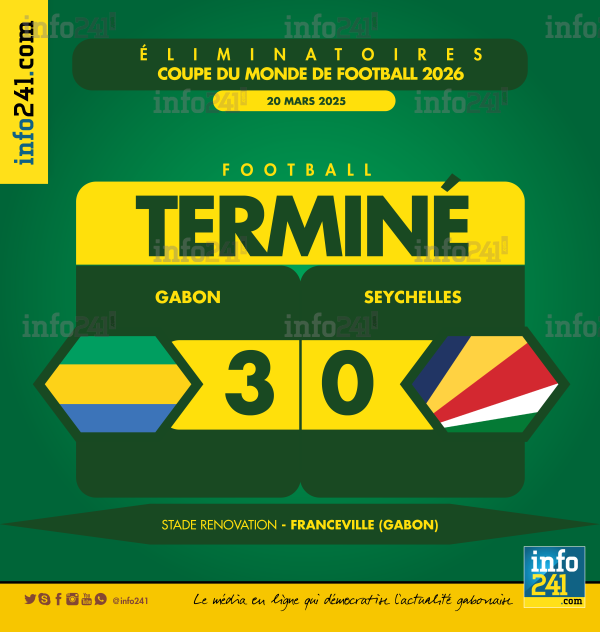 Au stade Rénovation de Franceville, le Gabon a parfaitement négocié son rendez-vous face aux Seychelles ce jeudi, lors de la 5e journée des éliminatoires de la Coupe du monde 2026 (zone Afrique, groupe F). Sérieux et appliqués, les Panthères ont dominé leur adversaire du jour 3-0, grâce à un début de match maîtrisé et une attaque bien inspirée. Avec ce succès, le Gabon prend provisoirement la tête du groupe devant la Côte d’Ivoire.