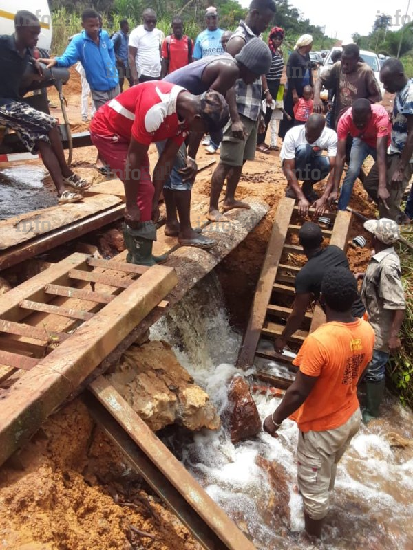 Après constatation de la rupture hier, quelques usagers et habitants des villages avoisinants ont pu se mobiliser pour apporter une solution provisoire avec des matériaux inadaptés qui peuvent d’ailleurs céder une fois de plus d’ici quelques jours. Au Gabon, le sempiternel problème des infrastructures routières ne concerne pas que l’intérieur du pays. Toute la province de l’Estuaire, province numéro 1 du pays, qui abrite non seulement la capitale administrative et politique Libreville, et de laquelle font parties Cocobeach, Kango, Donguila et Ntoum inclus dans le « Grand Libreville » n’en sont pas mieux loties.