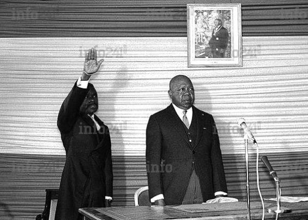 Le 13 avril 1967, le gotha politique gabonais et la Cellule Afrique de l’Elysée au complet sont réunis dans les locaux de l’ambassade du Gabon à Paris, Rue Greuze à l’époque : le président Léon Mba, sorti de l’hôpital pour la circonstance et son vice-président prêtent serment devant le président de l’Assemblée Nationale gabonaise.