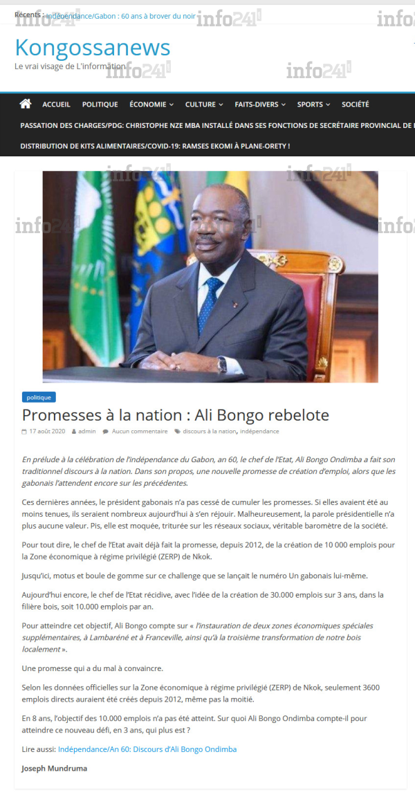 Un média gabonais suspendu pour avoir affirmé qu’Ali Bongo était « de plus en plus fou » © 2020 D.R./Info241