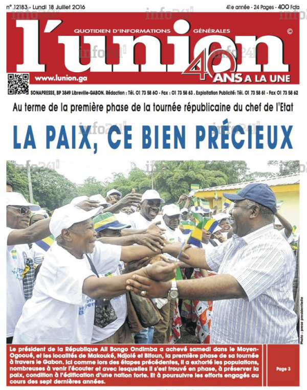 La paix, ce concept dissuasif tant prisé à la veille des scrutins présidentiels gabonais © 2016 D.R./Info241