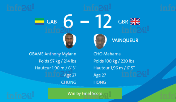 [MISE A JOUR 15H57] Le champion Gabonais, Anthony Obame, a été battu par l’Anglais, Mahama Cho, sur le score final de 6 à 12. Il en est donc fini de l’expédition gabonaise à ces Jeux olympiques.