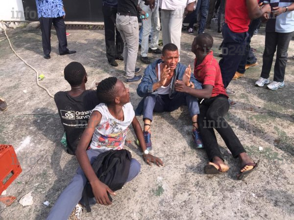 Quelques militants du front alertés ont pu, selon Jean Ping cité par l’AFP, « livré bataille et nous avons pu prendre certains d’entre eux ». Le spectacle se serait produit alors qu’un bataillon de la gendarmerie se situait à 100m des lieux sans aucune réaction de leur part. Les visiteurs impromptus ont été déshabillés et mis en caleçons par les militants avant d’être remis à la police judiciaire qui s’est rendue sur place.