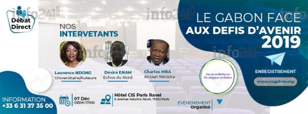 Le Cercle de réflexion stratégique du Gabon (CRSG), think-tank coordonné par Jamel Nkebassani, organisera un conclave avec pour thème : « Le Gabon Face aux Défis d’Avenir », samedi 7 décembre 2019 à Paris (France). En partenariat avec Info241 du groupe Binto Média. Plusieurs personnalités publiques prendront part aux panels de discussion lors de cet événement, entre autre : Anges Kevin Nzigou (avocat), Désiré Ename (journaliste), Ghislaine Regnongo (juriste), Charles M’Ba (Président PLG, ancien ministre), Franck Ping (entrepreneur), Laurence Ndong (universitaire, Vp PLG), Alfred Nguia Banda (Dr en droit, exilé politique) Jean Rémy Yama et Marc Ona (société civile).