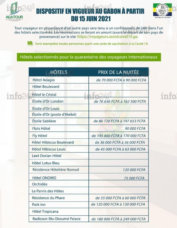 La vingtaine d’hôtels de la capitale gabonaise choisie pour cette opération et leur coût