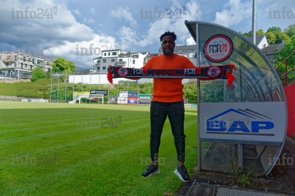 L’internation gabonais paraphant mardi son engagement avec FC Rodange 91 © 2020 D.R./Info241