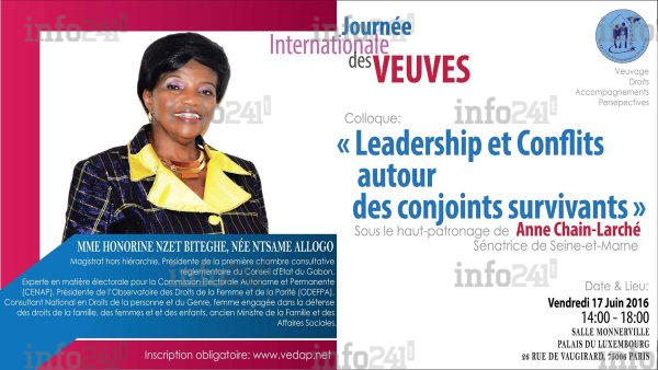 L’Association « Veuvage, Droits, Accompagnement et Perspectives » (VEDAP) organise le 17 juin prochain à Paris, au Palais du Luxembourg, sous le haut patronage de Mme Anne Chainlarche, sénatrice de Seine-et-Marne, un colloque sur le thème : « Leadership et conflits autour des conjoints survivants ». Cet événement s’inscrit selon la présidente du VEDPAP, Dr Laurence Ndong dans le cadre de la commémoration de la journée internationale des veuves, célébrée chaque 23 juin par les Nations Unies.