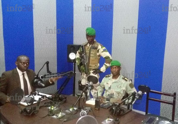 Ondo Obiang et ses hommes dans les locaux de Radio Gabon, le 7 janvier 2019