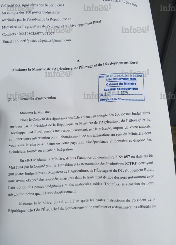 Pour tenter de réveiller la bureaucratie, le collectif des agents en attente a multiplié les démarches. Le 2 juin 2025, un courrier au secrétaire général : silence radio. Quinze jours plus tard, le 17 juin, une relance à la nouvelle ministre : silence encore.