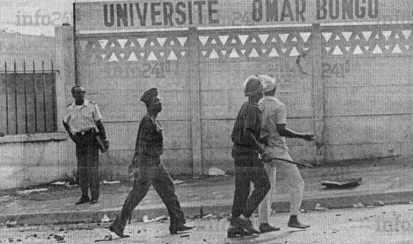 « En conséquence, le gouvernement décide : 1) la fermeture immédiate de l’Université Omar Bongo et le renvoi à compter du jeudi 16 juin 1994 de tous les étudiants dans leurs familles ; 2) l’exclusion définitive de l’Université Omar Bongo, l’interdiction de s’inscrire dans tout établissement d’enseignement supérieur ou professionnel au Gabon et l’impossibilité de bénéficier d’une aide de l’État pour effectuer des études à l’extérieur, des étudiants responsables des actes précités », martelait au nom du gouvernement René Ndemezo’o Obiang.
