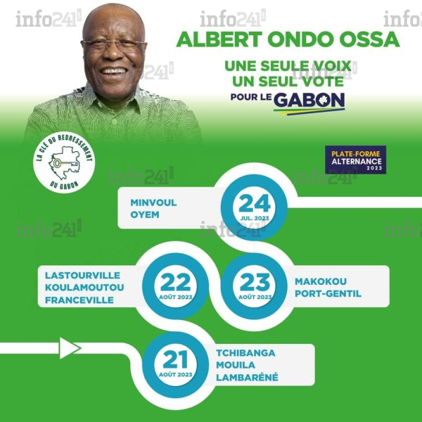 Ce mardi, le tour reviendra à l’Ogooué-Lolo et au Haut-Ogooué. Le candidat unique de l’opposition gabonaise sillonnera avec ses équipes les villes de Lastourville, Koulamoutou et Franceville. Puis mercredi, la caravane d’Albert Ondo Ossa se posera dans les provinces de l’Ogooué-Ivindo et de l’Ogooué-Maritime au travers des villes de Makokou et de Port-Gentil.