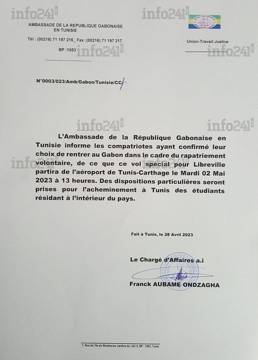 L’annonce du vol de rapatriement de gabonais