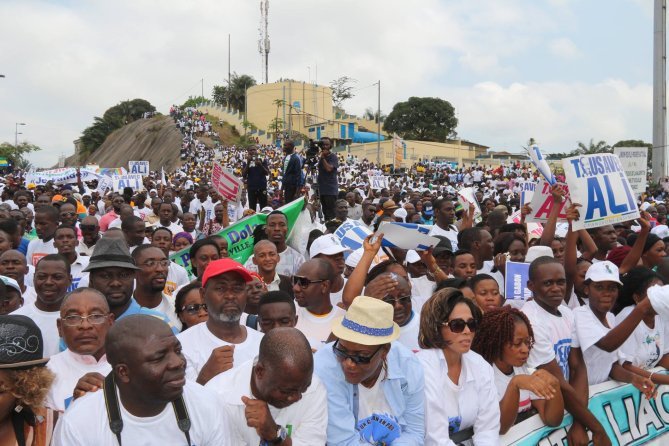 Quelques images du show politique d’Ali Bongo consécutif au dépôt officiel de sa candidature pour la présidentielle gabonaise d’août 2016. C’était samedi 9 juillet au rond-point de la Cité de la démocratie à Libreville.