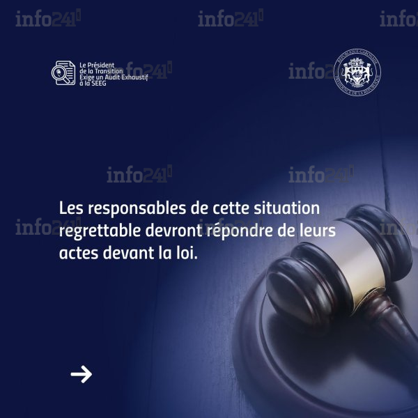 Ces scandales à répétition ont poussé, le 23 août, le général-président à ordonner un "audit exhaustif" de l’entreprise publique d’énergie. Dans un communiqué, la présidence gabonaise précise : « En réaction aux récents scandales qui ont secoué la Société d’Eau et d’Énergie du Gabon (SEEG), le Général Brice Clotaire Oligui Nguema, Président de la Transition, a donné des instructions claires à la Task-Force pour réaliser un audit rigoureux et approfondi ».