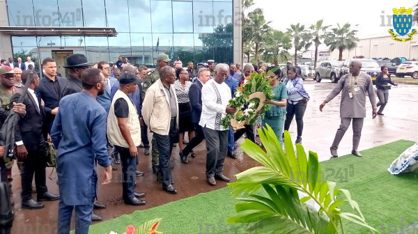 Le dépôt de gerbe de fleurs en hommage aux victimes, hier au siège de Perenco