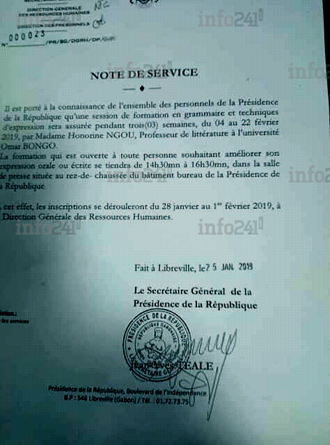 Qui a dit que le personnel Présidence de la république était constitué de l’élite de l’élite gabonaise ? C’est en tout cas ce que démontre une récente note de service n°23 du secrétariat général de la Présidence gabonaise, invitant le personnel à suivre des cours de « grammaire et techniques d’expression » durant ce mois de février. Une preuve s’il en fallait encore une que de graves soucis linguistiques y demeurent toujours !