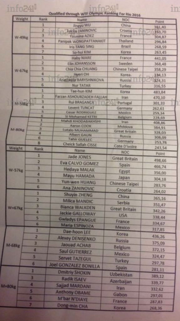Liste complète des qualifiés pour les JO 2016