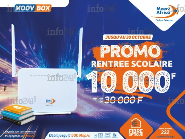 L’opérateur de téléphonie fixe Moov Africa Gabon Telecom a lancé ce 15 septembre une bonne promo pour la rentrée des classes. L’entreprise vient de réduire de plus de 66% le prix de sa box internet MoovBox. Le prix passe ainsi de 30 000 à 10 000 FCFA. Une sacrée économie pour les élèves gabonais et leurs parents qui devront faire leur rentrée à compter de ce lundi 18 septembre.