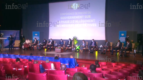 La Première ministre Rose Christiane Ossouka Raponda et 8 de ses ministres ont animé ce vendredi après-midi, une conférence de presse à Libreville pour annoncer la phase 2 d’allègement des mesures de confinement. Parmi elles, on note le couvre-feu ramené de 22h à 5h, la fin de la gratuité des tests Covid-19, la réouverture des lieux de culte, les rassemblements qui passent de 10 à 30 personnes, la création d’une brigade sanitaire chargée de veiller au respect des mesures sanitaires, la création d’un guichet d’accompagnement des bars et nuits qui demeureront fermés.