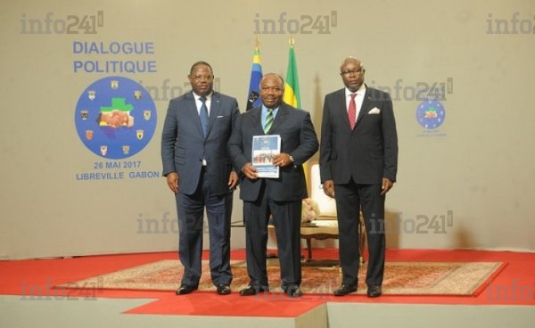 Ali Bongo posant fièrement avec les conclusions de son « dialogue »