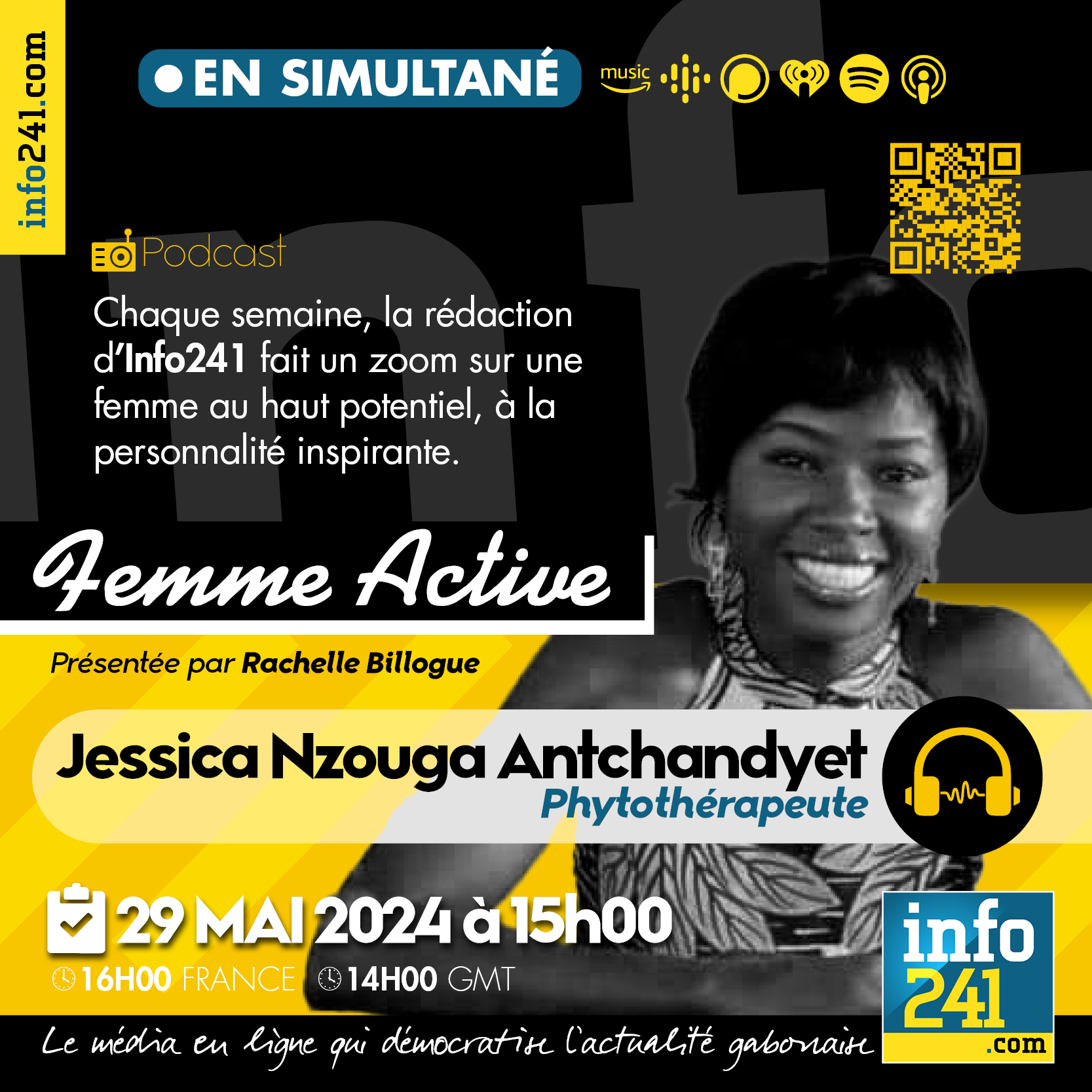 « Femme Active » #18, le podcast de la rédaction d’info241 qui fait un zoom chaque semaine sur une femme au haut potentiel et à la personnalité inspirante. Notre invitée est Jessica Nzouga Antchandyet alias « La reine des thés bio », détentrice d’une licence en marketing et un master en management des organisations. Elle est phytothérapeute et conseillère en plantes médicinales. Praticienne en perte de poids, elle est aussi coach bien-être et santé. Nous évoquerons avec elle son parcours et ses secrets de réussite.