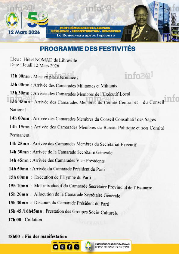 C’est dans ce climat particulièrement électrique que les militants sont invités à se rassembler autour du thème choisi pour cette année : « Résilience, reconstruction, renouveau » . Un triptyque qui résume parfaitement le chemin de croix d’une formation en quête de survie politique. À la suite de cet événement dans la province de l’Estuaire, les commémorations se poursuivront dans les différents chefs-lieux de provinces et de départements les 28 et 29 mars prochains, faisant office d’ultime test de mobilisation pour un parti en pleine convalescence.