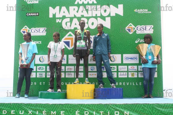 L’épreuve du marathon féminin a souri à la Kenyane Kigen Joan (3e marathon du Gabon 2013, 2e marathon de Bournemouth 2014, 5e marathon de Nairobi 2012), qui avait déclaré en conférence de presse dimanche, qu’elle allait remuer ciel et terre pour s’imposer. Même si elle s’est écroulée sur la ligne, elle a confirmé ses dires.