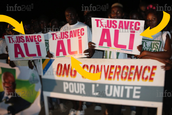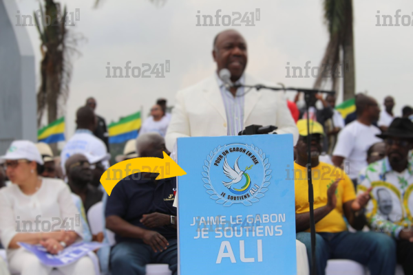 Sur la forme maintenant. Les images parlent mieux que de longues phrases discursives et dans le fond très pédantes. A chaque étape de cette tournée débutée le 12 juillet dernier, d’étranges similitudes tranchent avec le méga-meeting organisé par Ali Bongo le 9 juillet, lors du dépôt de sa candidature à la Commission électorale.