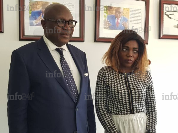 Maganga Moussavou présentant à la presse la candidate du parti à Mimongo