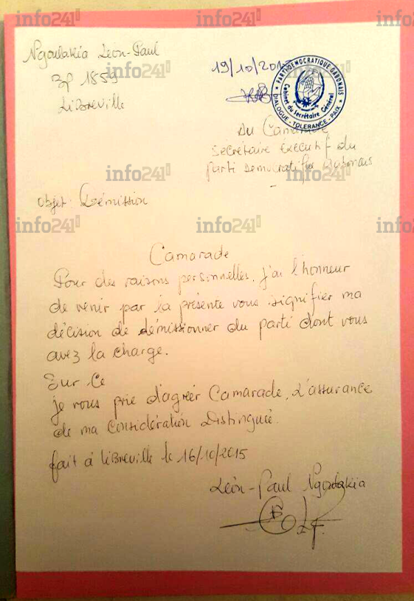 Léon Paul Ngoulakia qui a signifié son départ « pour raisons personnelles » au secrétariat exécutif du parti le 16 octobre par courrier manuscrit, est outre ses liens familiaux avec l’actuel président du PDG, directeur général de la Caistab (Caisse de stabilisation et de péréquation du Gabon) et ancien patron des renseignements. Il fut en 2009 lors de la présidentielle, le coordonnateur du cabinet de campagne d’Ali Bongo.